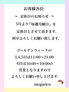 #お知らせ #定休日 #ポカポカ #子連れ #ママ友 #ゴルフ  #子連れ #子連れOK  #整体 #オイルマッサージ #心斎橋 #トレーニング #骨盤調整 #いいね #肩甲骨  #自分磨き  #いいねした人で気になった人フォロー #リラックス #ストレッチ #肩こり #首こり #リセット #堀江 #南船場 #新町