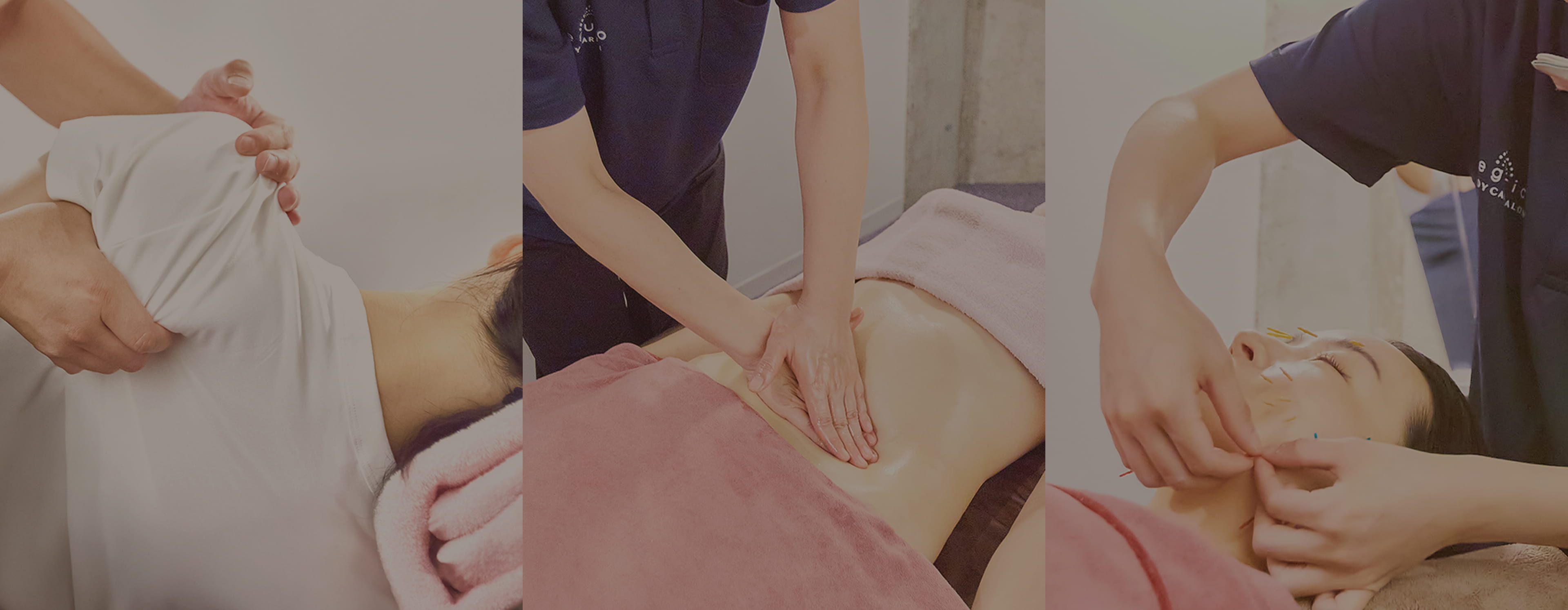 meguricoでは、柔道整復・鍼灸・整体・オイルケアなど、